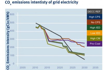That’s the word from a new report just released by London’s Imperial College. The researchers ran models of six likely scenarios for how Britain’s economy and carbon emissions could behave under current policy. The country’s Committee on Climate Change (CCC) has recommended that Britain get its emission rate — the amount of carbon dioxide released for every unit of energy produced — down to 50 grams of CO2 per kilowatt-hour (gCO2/kWh) by 2030. But in all six scenarios, the rate remained at or above 100 gCO2/kWh in that year.