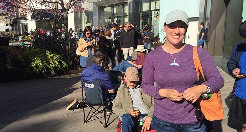 Photo Credit:Leslie R in San Diego waits in hours-long line to pre-order the Tesla Model 3. Tesla Motors received more than 250,000 pre-orders within 72