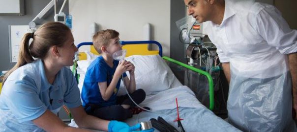 The mayor of London announced his proposals at Great Ormond Street Hospital where he visited children who are being treated for respiratory problems exacerbated by poor air quality (Image: S. Rousseau/PA)