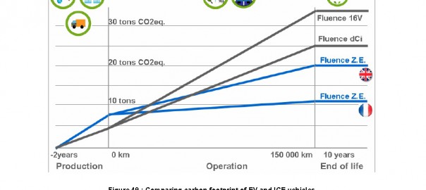 The car is the Renault Fluence ZE, the electric conversion of a French compact sedan not sold in North America. That analysis, titled “Fluence and Fluence ZE: Life Cycle Assessment” (PDF) is now three years old, but it remains an excellent model for looking at gasoline versus electric propulsion.