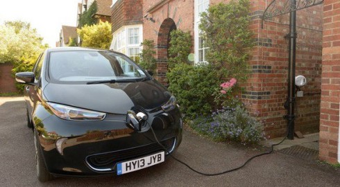 A shot of the Renault ZOE charging in front of houseA shot of the Renault ZOE charging in front of house